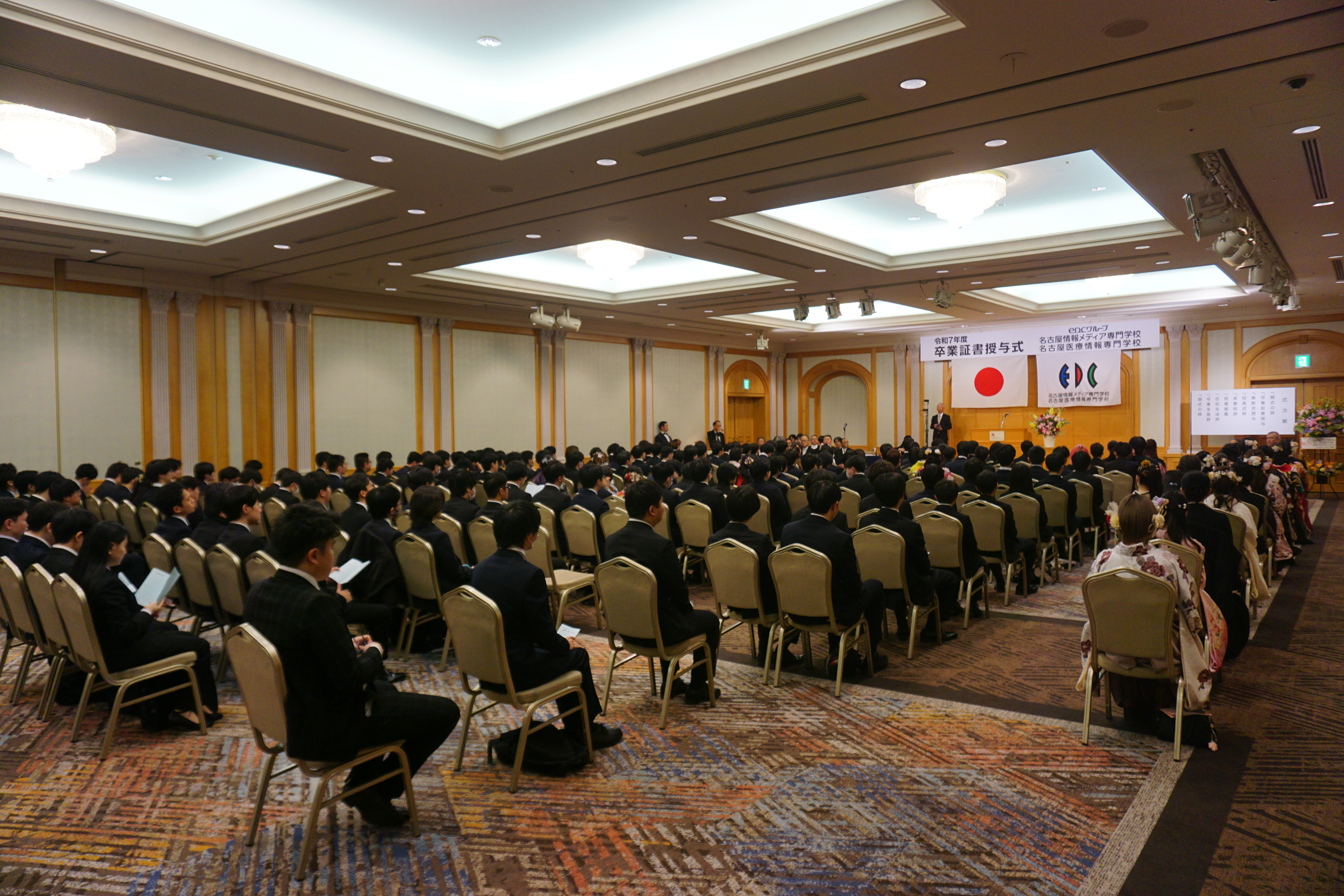 3/5(木)に名古屋マリオットアソシアホテルにて「名古屋情報メディア専門学校/名古屋医療情報専門学校 卒業証書授与式」を挙行しました。